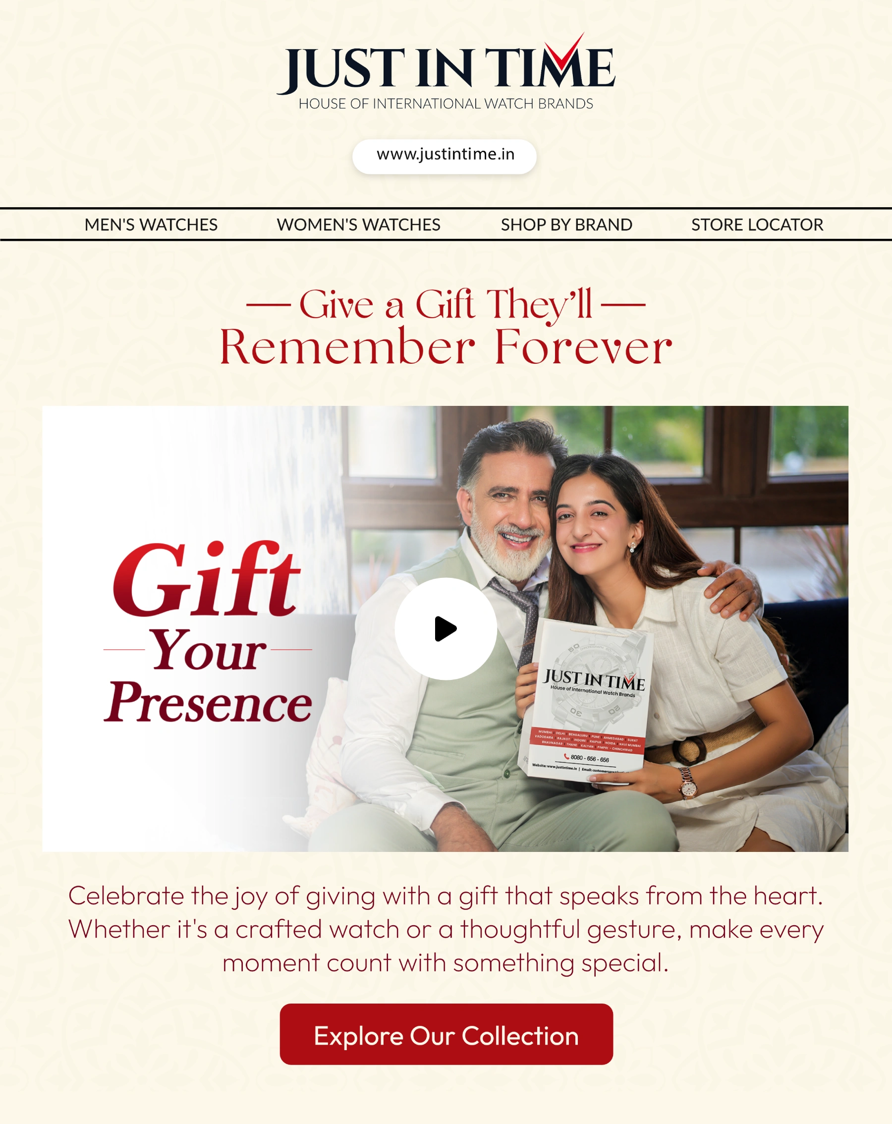 Just In Time is India’s largest watch retailer, bringing iconic global brands under one roof across 80+ boutiques nationwide. With a strong foothold in the premium and luxury segment, it caters to a diverse audience of watch enthusiasts from first-time buyers to seasoned collectors.