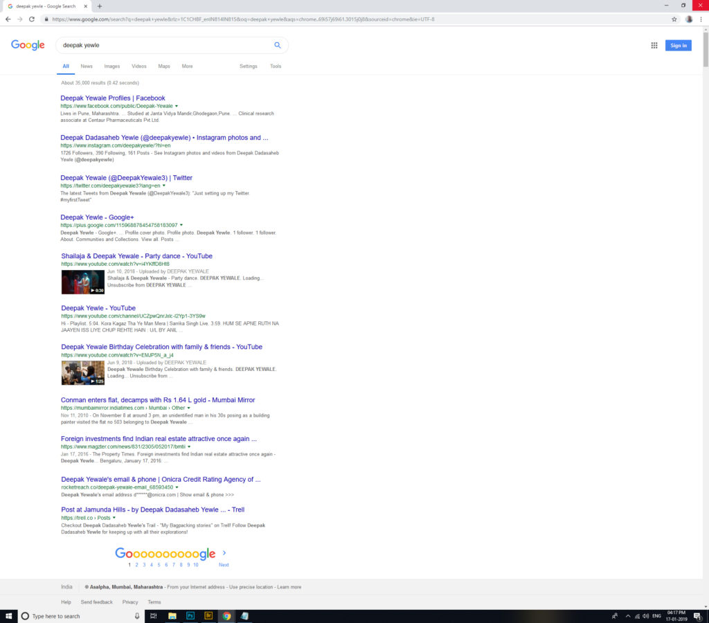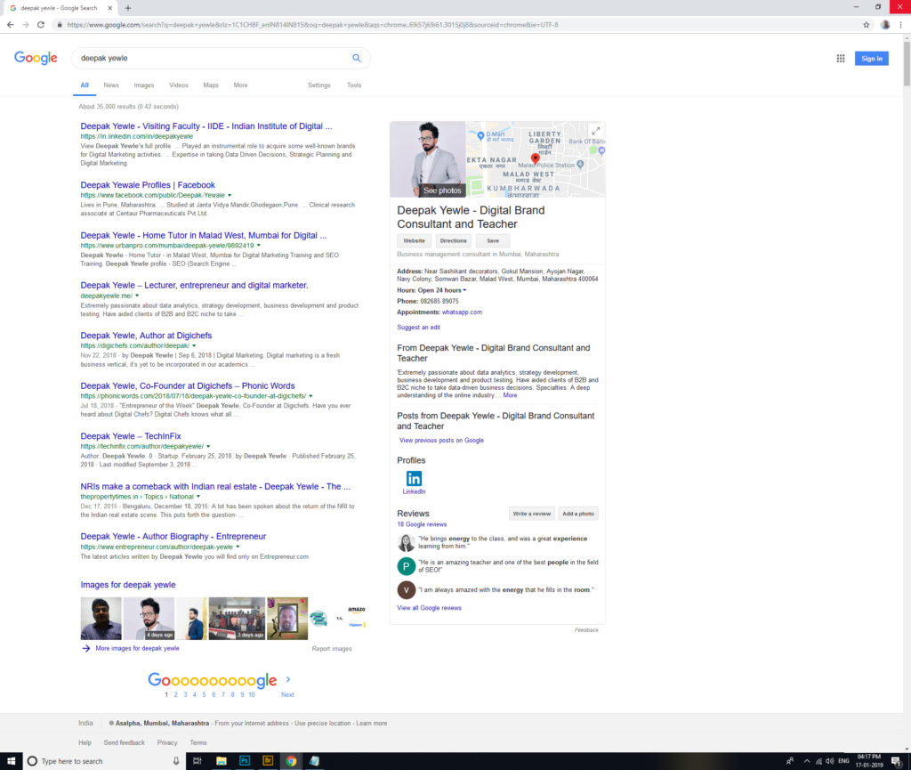 To follow the idea through, I ran an experiment and started working on my profile to manipulate the top 10 results for my name (keyword): Deepak Yewle.