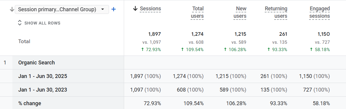 109.54% Surge in Total Users and 72.93% Boost in Sessions Through Strategic SEO Revamp