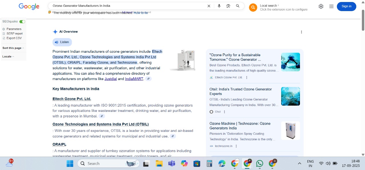 OTSIL (Ozone Technologies & Systems India Pvt. Ltd.) is a trusted name in the field of ozone-based solutions, catering to industrial, commercial, and environmental needs across India and beyond. Specialising in ozone generators, the brand empowers industries with cutting-edge technologies for water and wastewater treatment, air purification, and paper & pulp bleaching. With over two decades of expertise, OTSIL serves a wide spectrum of clients including consultants, government bodies, contractors, and large businesses helping them adopt sustainable ozone-based technologies. Each product is engineered for efficiency, reliability, and environmental compliance, ensuring long-term performance with minimal ecological impact.